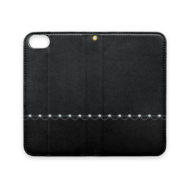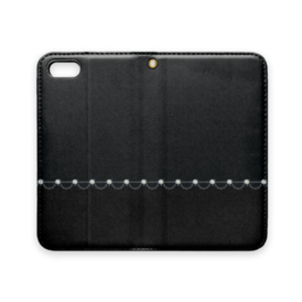 薔薇&レース 手帳型iPhoneケース 白薔薇×黒色 ベルトなし+ストラップ穴あり