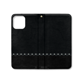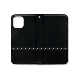 - 手帳型iPhoneケース iPhone 11 ベルトなし+穴あり 白薔薇×黒色(iPhone 11 - ストラップ穴 あり)2025-10-24