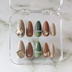 タピ・ルージュ イメージネイルチップ 上段が左手デザイン、下段が右手デザインです。 親指のストーンパーツはしっかりめに固定していますが、ケースから取り出す際や爪から外す際などに強く引っ張ったりしないようご注意ください。 チップ形状:アーモンド ︎✦︎付属アイテム 粘着グミシールシート2枚・ミニヤスリ・ウッドスティック サイズオーダー品となります。 画像を参考にチップサイズをご確認いただき、お選びください。 爪の一番広い部分の横幅がチップサイズ選択で必要となります。柔らかいメジャーで爪のカーブに合わせてお測りください(柔らかいメジャーがない場合はマスキングテープを爪に貼りペンなどでマークをつけ、そのサイズを定規などで測る方法もございます)。 サイズに迷われた場合・平爪の方は、ヤスリで調節出来るよう大きいサイズの選択がオススメです。 以下、ご注文の際にお送りいただく必要事項となります。 チップサイズ 左手(親指〜小指順): 右手(親指〜小指順): デザインの左右変更を希望される場合は、ご注文の際にご連絡ください。 ︎✦︎イメージ違い・サイズ不一致による返品交換不可となります。 ︎✦︎お使いの端末や閲覧環境により、写真と実物の色味や質感が多少異なって見えることがございます。ご了承ください。 ︎✦︎気泡やダストはチェックしておりますが、趣味で作成している品となりますので気になる方はご遠慮ください。 ︎✦︎保管がしやすいようオマケとしてチップケースにお入れしています。細かい傷がつきやすい素材のため扱いにお気をつけください。 ご注文から発送まで6日ほどお時間を頂戴します。