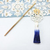 鶴丸国永モチーフの曼荼羅簪です。 髪にさしたり、帯にさしたりと多用途にお使いいただけます。 モチーフ部分長めですので、タッセルを外してのご注文も可能です。 タッセルなしでのご購入はメッセージにて受け付けしておりますのでよろしくお願いします。 水引、廃盤のスワロフスキー、ホタルガラス、手染めのタッセル等を使用しております。 水引は曼荼羅結びになっており、コーティング剤を塗布してあります。 多少形崩れや水濡れに強くはなりますが、防水効果が高い訳ではありませんので雨などにはお気をつけください。 こちらは簡易梱包になります。 プレゼント梱包をご希望の場合はプレゼント梱包を作品と同時にご購入頂きますようよろしくお願いします。