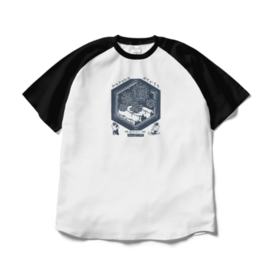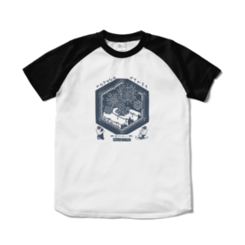 ゲレンデ冬花火・湯沢町_ラグランTシャツ 黒白【新潟県を巡るザワたろー】