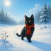 白く静かな雪原を、黒猫がひとり、歩いていきます。