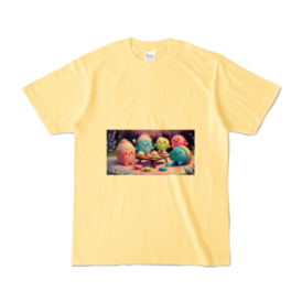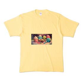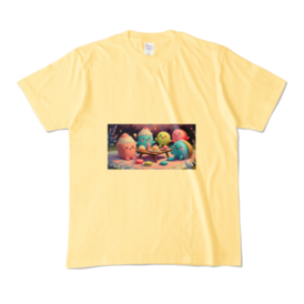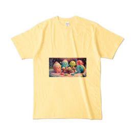 カラーTシャツ - XL - ライトイエロー (淡色)見ているだけで心が和む「ゆるふわスイーツTシャツ」で、毎日をもっと甘く、可愛く!愛らしいスイーツたちが、あなたのファッションを優しく彩ります。着るだけでハッピーになれる、とっておきの1枚。スイーツ好きのあなたに贈る、癒やしのコレクションです。
