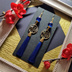 【和風】福チャームとガラス玉のピアス(イヤリング)(青)【チャイナ】【中華風】