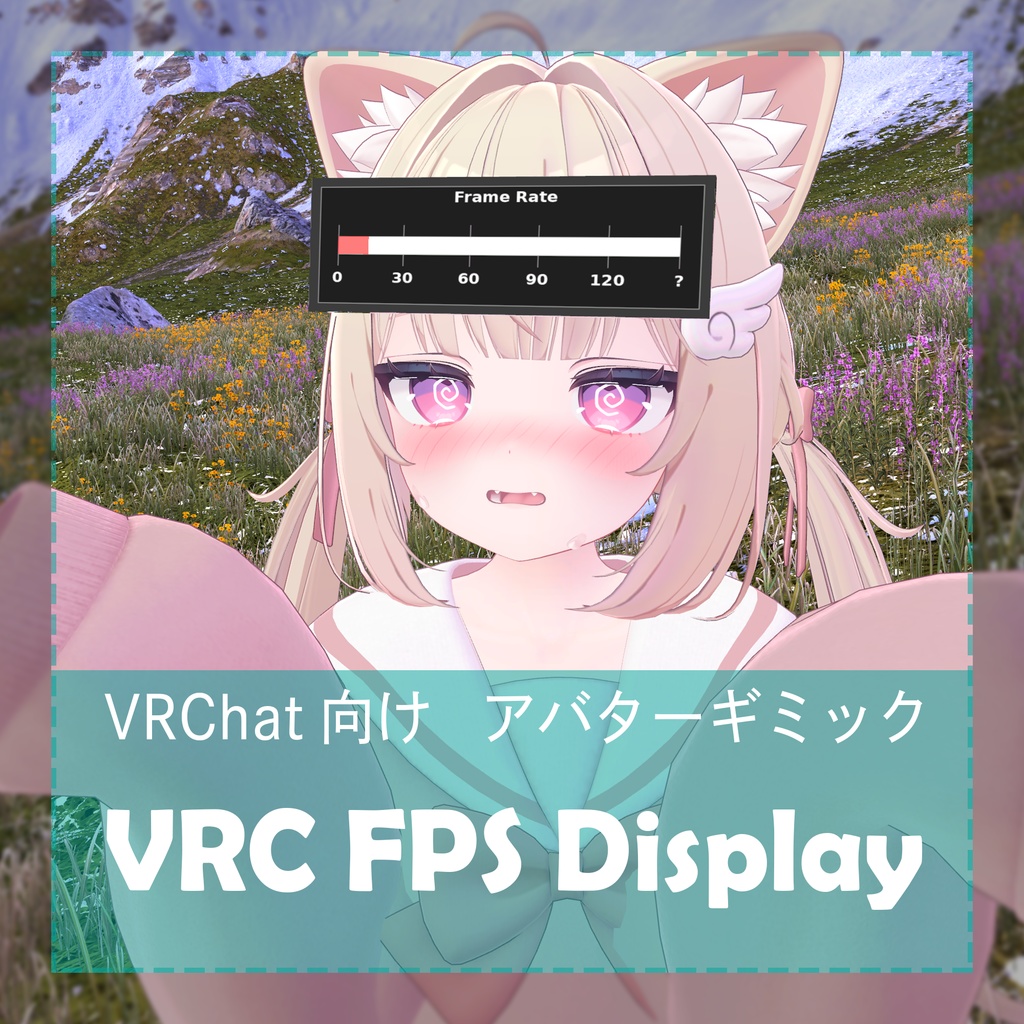OSC連携で、誰が見ても同じFPSの値を表示! 確実に「自分の」FPSを見せつけることができます。 パフォーマンスに連動してゲージの色が変わります。 ・赤色: 30FPS未満 ・オレンジ: 30~60FPS ・緑色: 60~90FPS ・シアン: 90FPS以上 色変えテクスチャ付きで、黒 / 白のバリエーションが楽しめます。 With OSC linkage, the same FPS value is displayed for everyone to see! You can reliably show “your” FPS. The color of the gauge changes in conjunction with performance. Red: less than 30FPS - Orange: 30-60FPS - Green: 60-90FPS - Cyan: over 90FPS Black/white variation with color change texture.