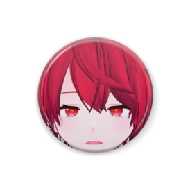 バーチャルYoutuber赤口白夜の配信復活記念! パワーアップしてさらに最強になったびゃくやの顔面をドアップで堪能できる缶バッジです。 ジトーっとあなたを見つめるクールな逸品!