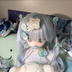 キラキラした細めの糸で手編みしてます\(*^^*)