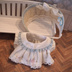 無属性ぬいぐるみ(10㎝)用の服です。 ワンピース ハーフボンネ 以上の3点セットです。 一点物として刺繍や装飾をしております。 全く同じ物は販売しませんが、同じ布を使用して似たようなドレスを販売する場合が御座います。 あらかじめご了承下さい。 ◯ワンピースは後全開きマジックテープで着脱出来ます。 上半身のみ裏地あり、端はロックミシンで処理しています。 ◯ハーフボンネはゴム式になっており、顎部分で固定します。 ケモノミミが生えている子は、ミミの後ろにプリムを置き耳の後ろにゴムを通し顎にゴムを持っていくと固定し易いです。 ハーフボンネットには手染めした花が縫い付けてあります。 1週間着せて様子見しましたが、自宅のぬいぐるみには色移りはしませんでした。 素人の染色の為、長時間着せ続けるのはご遠慮下さい。 色移り後の対応や保証は一切出来かねます。 頭のデザインにより、着せ方や見栄えが変わりますご了承下さい。 ◯購入後イメージの違いや、着れなかった等での返品・交換は一切受付出来ません。 下記の説明をよくご確認のうえ、購入をお願い致します。 ◯サイズについて 無属性ぬいぐるみ10cm には様々なサイズの子がいらっしゃいます。 製作者の自宅では下記サイズの子の着用を確認しております。 ⚫︎骨なし細身の子 (胴回り12㎝ 右手から左手まで9㎝) ⚫︎骨あり太めの子 (胴回り13㎝ 右手から左手まで9.5㎝) モデルの子の着用例をご確認のうえ、購入を検討下さい。 ◯個体差について 柄のある布を使用している為、スカート部分の色味やボンネットの柄に個体差があります。 印象は変わらないようにしていますが、気になる方はご遠慮下さい。 個別の指定は受付できませんので、予めご了承下さい。 ◯色移りについて 制作前に生地を洗っております。 1週間着せたまま経過を観察し色移りしない事を確認していますが、長時間着せたままにはしないで下さい。 当方で保証やケアは出来ませんので予めご了承下さい。 ◯装飾について 服に使用しているフリルやレースやリボンは繊細な物も使用しております。 着脱の際は装飾を引っ張ったりしないようにお気をつけて下さい。