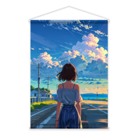 夏、あの空の下で ─ ノスタルジックな青春を飾る一枚 AIイラストです 海沿いの道、ゆれる髪、染まる雲。 まるで映画のワンシーンを切り取ったような、幻想的な情景をタペストリーにしました。 布にプリントされたことで、やさしい風合いと空気感がよりリアルに。 お部屋に「青春の記憶」をそっと飾る、そんな一枚です。 この商品はpixivFACTORYで作られた商品です。サンプル画像は完成イメージのため、実物と異なる場合があります。