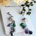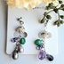 シルバーロンデルボールに、色味とサイズを変えてシルバー×パープルのチェコドロップを下げて、アクセントに瞳の色イメージのグリーンオニキスのコインカットを添えました。 ふと気付いたんですが、水心子くんはパープルよりブラック×シルバーメインの方が合っている……? ピアス・イヤリング両対応ですので、お好みの金具でご購入下さい。 ●アレルギー対応商品について 当店ではピアス、イヤリング、チェーン、アジャスター等にサージカルステンレス316を使用時明記しております。 体質には個人差がありますので、必ずしもアレルギーが出ないという保証ではございません。 樹脂ピアスも取り扱っておりますので、そちらもご検討下さい。 ●色褪せ・錆について ステンレス以外の、錆びやすい材質のパーツとの組み合わせの場合、そのパーツの錆びがステンレス表面に付着し「もらい錆」により錆びてしまうケースがございます。 その際は錆びをすぐに除去するようにしてください。 また、水に濡らしたりアルコール・汗等が付着しないようご注意下さい。 ●レジン作品について レジン作品は非常に繊細な為、強い衝撃を与えたり、高温・直射日光に長時間さらさないようご留意下さい。 また、水濡れやアルコール、汗などは劣化の原因となる為、触れないようにご注意下さい。 ●天然石について 当店では天然石を使用している場合、その種類を明記しております。天然石の一部は長時間の直射日光や水分に弱いものが多いです。アクセサリー用に加工されているものを仕入れておりますが、水に濡らしたり長時間直射日光にさらさないよう、ご注意下さい。