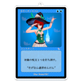 個人Vtuber バーチャルプールシャークれいな ✨🦈 (ReinaVRC) マジックザギャザリングのカードをイメージしたアクリルキーホルダーです。 れいなの大好きなカード「Counterspell/対抗呪文」(基本セット第6版)をモチーフにしています。 MTGコントロールプレイヤーの皆さんぜひとも大会等に持っていってすべての呪文を打ち消してみてごせ💧💧 どこでも呪文打ち消せるけん✨ 身に着けると引きの運がよくなるとの噂も!(※個人の感想であり、必ずしも運がよくなるという保証はありません) 活動の応援・支援、モチベーション向上につながるけんよかったらぜひ✨ 🦈 100mmサイズです 🦈 モデル、写真撮影、デザイン:れいな本人 ✨3Dモデルクレジット✨ 使用ベースアバター「セレスティア」は STUDIO JINGO 様による著作物です (https://jingo1016.booth.pm/ , https://twitter.com/jingo_1016) 「オリジナル3Dモデルセレスティア」の販売ページはこちら: https://jingo1016.booth.pm/items/4035411 オリジナル3D衣装「メイガスバニー」(ROKO SHOP) https://booth.pm/ja/items/4911160 この商品はpixivFACTORYで作られた商品です。サンプル画像は完成イメージのため、実物と異なる場合があります。