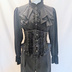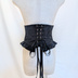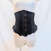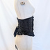 黒のジャガード生地にレースのフリルの装飾を施したロング丈のコルセットになります ボーンが入っており、編上げでしっかりウエストを締めスタイリッシュに見せることが出来ます スカートやワンピースに合わせるのはもちろん、パンツスタイルに合わせるのもオススメです 着用する際に問題はありませんが、後ろのハトメが歪んでいるため多少お値下げして販売しております ご了承の上ご購入ください ウエストが74cm以下の方は後ろの布を短くする必要があるためウエストサイズを記載の上ご購入ください 4,5枚目は着用例でブラウスやスカート、パンツは商品に含まれておりません ※ハンドメイド品です ♢素材 表:ジャガード×レース 裏:キャンバス地 ♢製品サイズ ウエスト:62-81cm(ウエストが62cm以下の方でも着用は可能です) 着丈:前28cm横16.5cm後ろ21.5cm