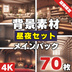 高画質背景画像(70枚) サイズ:3840×2160px(4K相当) 形式: PNG 背景テーマ例: 北欧風リビング モダンカフェ 書斎・勉強部屋 豪華な図書館 古城の一室 シンプル背景