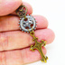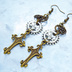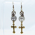 アンティークゴールド ロザリオと歯車を組合せたスリムなスチームパンクピアス アンティークシルバー