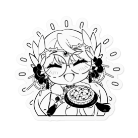 鉾田チーズケーキさんとのコラボチーズケーキタルトを食べた2025誕生日記念SDイラストのモノクロステッカーです! サンプル画像は完成イメージのため、実物と異なる場合があります。