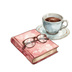 水彩画風アンティークピンクのカフェクリップアート12点セット(PNG背景透過)
