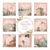 アンティーク風ピンク旅行アイコン|水彩クリップアート10種(PNG)