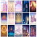【縦型配信素材】幻想的な背景の大聖堂のイラスト30枚セットです。