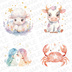 ソフトな水彩タッチとパステルカラーで描かれた、キュートな全12種類、星座モチーフのクリップアート素材です。 すべての素材は 高解像度・背景透過PNG形式 でダウンロード可能。印刷にもデジタルデザインにもすぐに使えて便利です。