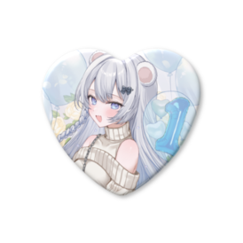 熊乃海心 1周年記念グッズ③ 1周年を記念し描き下ろしていただいた 1枚絵を使用したハート型缶バッジ🩵 購入可能期間:2025/10/14~11/14 受注生産品となります。 お届けまでお時間いただくことがございますのでご了承ください。 この商品はpixivFACTORYで作られた商品です。サンプル画像は完成イメージのため、実物と異なる場合があります。