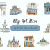 clipart 水彩画 × 水色 × アンティーク × フランス建築物 12種類