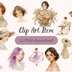 clipart 「水彩画」「アンティーク調」「可愛い女性のクリップアート」12種類 PNG