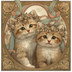 ミュシャ風の猫たち|アール・ヌーヴォー調クリップアート素材(全12種)