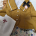 ご覧いただきありがとうございます 40cm(MDDボディ推奨) S胸、M胸、L胸さん着用可能です (L胸はパラボックス40cmボディL胸での確認ですが、余裕がありますので他ボディL胸も大丈夫かと思います) フレンチスリーブT ミニスカート ジャケット の3点セットです お出かけ服のイメージですが、 制服っぽい雰囲気もあるかな、と思います セットのTシャツはフレンチスリーブですが お手持ちの長袖インナー等を合わせていただいても良いかと思います ジャケットのお袖は幅を広めにしていますので 重ね着する時も、わりと袖が通りやすく着せやすいと思います Tシャツ、スカート、ジャケットそれぞれ 単品で他のお洋服とも合わせやすい感じにデザインしています コーディネートを楽しんでいただけると思います^^ Tシャツは後ろベルクロ(極薄マジックテープ)で全開、スカートは後ろスナップボタン ジャケットは表のボタンは飾りで、内側スナップボタンです
