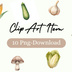 水彩画風 アンティークかわいい野菜クリップアート(PNG形式・背景透過)