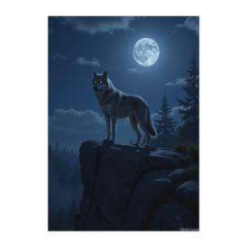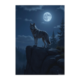 この商品はpixivFACTORYで作られた商品です。サンプル画像は完成イメージのため、実物と異なる場合があります。 満月に照らされた岩場に立つ狼を描いた静謐で力強い一枚。夜の森と月光がインテリアに神秘を添えます。