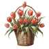水彩画風パリのカゴバッグ(チューリップ入り) PNGクリップアート