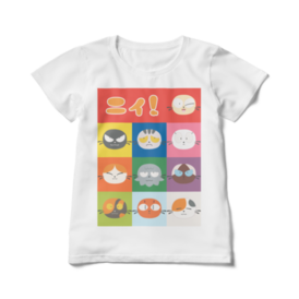 ニィと仲間たちの顔が並んだレディースTシャツです。 サイズはMとLからお選びいただけます。 通常サイズ https://nishop.booth.pm/items/7451301 キッズサイズ https://nishop.booth.pm/items/7451630 ※この商品はpixivFACTORYで作られた商品です。サンプル画像は完成イメージのため、実物と異なる場合があります。
