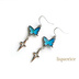 濃い水色と水色の蝶々と十字のピアス・イヤリングです。 黄色と水色のラメが入った濃い水色と水色のグラデーションを掛けた蝶々と、十字のパーツを合わせて上品な印象になる様に仕上げました。 十字のパーツが揺れと、蝶々に光が当たった時の色合いを楽しんでいただければと思います。 【金具の色】 シルバー 【蝶々の色】 濃い水色と水色のグラデーション 【サイズ】 高さ 5.8cm 横 1.6cm お写真はフックタイプのピアス金具です。 ※キャッチのピアス・ネジバネ式のイヤリング・マスクチャーム(カニカン)ノンホールピアスに変更可能です。 アレルギー対応の金具にも変更可能です。 変更をご希望の方はオプションにて変更、メッセージなどいただけますとご対応させていただきます。 金属アレルギーやオプション変更につきましては、こちらをご参考ください。 https://liquorice-i.booth.pm/items/3436441