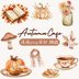 アンティーク秋カフェ素材集 水彩透過PNG 30点
