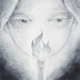聖書より 世界の様々な装飾やモチーフ、様式に興味があり、 その時々の自分の感情と結び合わせて再構築する試みを行っています。 この展示では「火炎」をモチーフに絵画を制作しました。 古来より宗教儀式に用いられ、神の象徴や呪術的な意味を託されてきました。 仏教においては浄土へと導く灯りとして、 また人々の煩悩を焼き払い浄化する火もあれば、地獄の炎もあります。 それらの現代まで続く炎のイメージと 自分の中の「炎」を燃やすように表現しました。 2024年 紙に顔彩 SM号(227×158mm) 額付き 裏面に作者のサインがあります 2024 Pigments on paper SM(227×158mm) with frame *The artist's signature is on the back