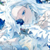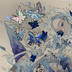 オリジナル 手描きイラスト 女の子 「青色世界」 正方形サイズ 透明水彩