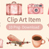 【canva】水彩風旅行アートクリップアートセット(ピンク系/全10種類)PNG背景透過
