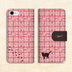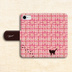 猫とほっこりツイードの手帳型スマホケース(桃×ブラウン) 全機種対応 カバー iphone16e iphone15 猫