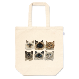 6匹の個性豊かな猫を刺繍調の繊細なタッチで表現したトートバッグです。 ■ 仕様 素材: 綿100%(12オンス) カラー:ナチュラル 本体: 360 × 370 × マチ110mm/容量10L 持ち手: 25 × 560mm プリント: 透明転写方式(CMYK) ※透明転写方式により、デザイン周囲にわずかな透明縁が生まれます。これが刺繍パッチのような立体感を演出し、手仕事の温かみを表現しています。白色は生地本来の色で表現され、落ち着いた自然な色調に仕上がります。 ■ 製造について 一点一点丁寧に製作するため、印刷位置(±5mm)、マチ(最大±6mm)、持ち手長さ(最大±25mm)、縫製部分に個体差が生じる場合があります。天然素材特有の風合いの違いや異原糸の混入も、一点ものとしての個性としてお楽しみください。 ■ ケア 裏返して洗濯ネット使用を推奨。アイロンは当て布の上から、プリント部への直接高温は避けてください。