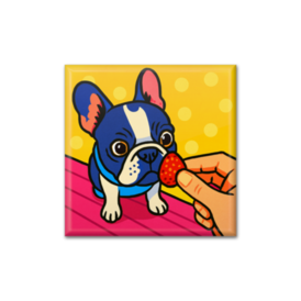 フレンチブルドッグが、真っ赤なイチゴにくぎづけ! 好奇心いっぱいのまなざしを、ポップな色彩でTシャツに閉じ込めました。 着るだけで、ちょっとした物語が始まるかも。