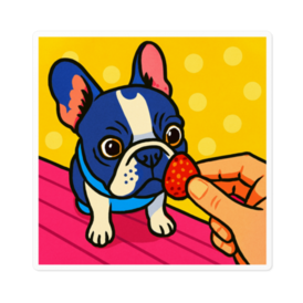 フレンチブルドッグが、真っ赤なイチゴにくぎづけ! 好奇心いっぱいのまなざしを、ポップな色彩でTシャツに閉じ込めました。 着るだけで、ちょっとした物語が始まるかも。