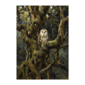 この商品はpixivFACTORYで作られた商品です。サンプル画像は完成イメージのため、実物と異なる場合があります。 苔むした古木の枝に静かに佇むフクロウを描いた油彩風ポスター。自然と調和するフクロウの姿が、森の奥深い神秘を感じさせます。落ち着いたインテリアに最適です。