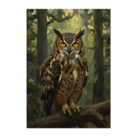 この商品はpixivFACTORYで作られた商品です。サンプル画像は完成イメージのため、実物と異なる場合があります。 明るい森の中、木の枝に堂々と佇むフクロウを描いた油彩風ポスター。金色の瞳が印象的で、自然の叡智を象徴するような存在感を放っています。インテリアや学びの場にもおすすめです。