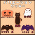 ライトベージュ: スキンカラーライトベージュ+クッキー5種(ジャックオランタン/黒猫/おばけ/コウモリ黒/コウモリ紫) ベージュ: スキンカラーベージュ+クッキー5種(同上) オークル: スキンカラーオークル+クッキー5種(同上) 全色セット: 上記ライトベージュ/ベージュ/オークルの内容が全て同梱