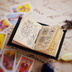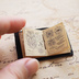 --------------------------------------------------- 【豆本「見習い魔女の手帳」】 サイズ:2.8cmx4.7cm 内容:イラスト入り8ページ+開けない部分10ページ 素材:クラフト紙、本皮 --------------------------------------------------- 見習い魔女が綴った「手帳」を豆本化しました。 手帳にはお師匠様との勉強から魔女の心得まで、魔女の秘密がいっぱい! 1ページ1ページに込められた日常を覗いて頂けたらと思います^^ 表紙は「黒の本皮」手帳中身は薄いクラフト紙を使用 本文は糸とじで閉じています。 絵や文字入りのページは8ページ 全体的にアンティークな雰囲気に仕上げました。 内容は… ”お師匠様と魔法陣の練習” ”森で拾った宝物” ”飼い猫「オニキス」とお師匠様の使い魔「ジェット」” "魔法陣の基本と月の満ち欠けメモ" "お師匠様にもらった幸運の護符" "魔女の心得(魔術協会配布紙)" などなど。 手帳の厚みをだすため、接着して開けないページ10ページも下に入っています。 オビツ11や1/6サイズのドール小物としてもお使いいただけます。 また、ミニチュアの棚や机などと組み合わせていただくと、より雰囲気のあるインテリアになります。