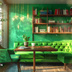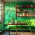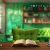 【動く背景】グリーンのナチュラルなブックカフェ配信セット|アイテム付き