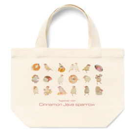 文鳥と一緒 シナモン文鳥さんがいっぱいト-トバッグ