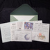月籠/月凪葬夜の活動をまとめたA6サイズの両面ポストカード(自家印刷)3枚と、サークルの合同作品をお送りします。月籠の新規サークルカードも付きます。
