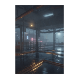 この商品はpixivFACTORYで作られた商品です。サンプル画像は完成イメージのため、実物と異なる場合があります。 雨音と光が交差する無人の高架下。濡れた床面が街の灯を映し出し、どこか懐かしくも近未来的な情景を描きます。静かな孤独のアートポスター。
