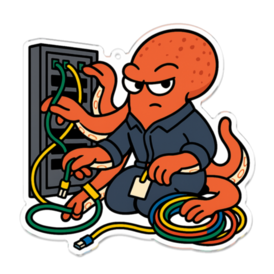 マダコ(*Octopus vulgaris*/軟体動物・頭足綱・タコ目)をモチーフにした“配線職人”キャラクター、ダコネクト。浅海の岩礁や海草帯・砂泥底にすみ、狭所通過・色や質感の変化・器用な操作が得意という生態を、データセンターのケーブル取り回しに重ねて擬人化。夜行性で、食性は甲殻類・貝類・小魚。IUCNレッドリスト評価はLC(軽度懸念)。 八本腕で「差す・整える・結束・ラベリング」を同時進行。曲率半径や結束テンションをきっちり守り、トラブル時は色相環ベースの配線で原因箇所を即座に特定する裏方ヒーロー。口数は少ないが、乱れた配線を見るとつい“警報色”に変わるのが玉にキズ。座右の銘は「見えない線ほど、世界を動かす」。海底ケーブルの接続作業版イラストも展開予定。 #ケーブル配線工 #データセンター #マダコ #タコ #軟体動物 #頭足類 #ゆるいイラスト #クセつよキャラ図鑑 #キャラグッズ #SUZURI #Booth #イラストレーション #キャラクター #動物イラスト #生物イラスト この商品はpixivFACTORYで作られた商品です。サンプル画像は完成イメージのため、実物と異なる場合があります。